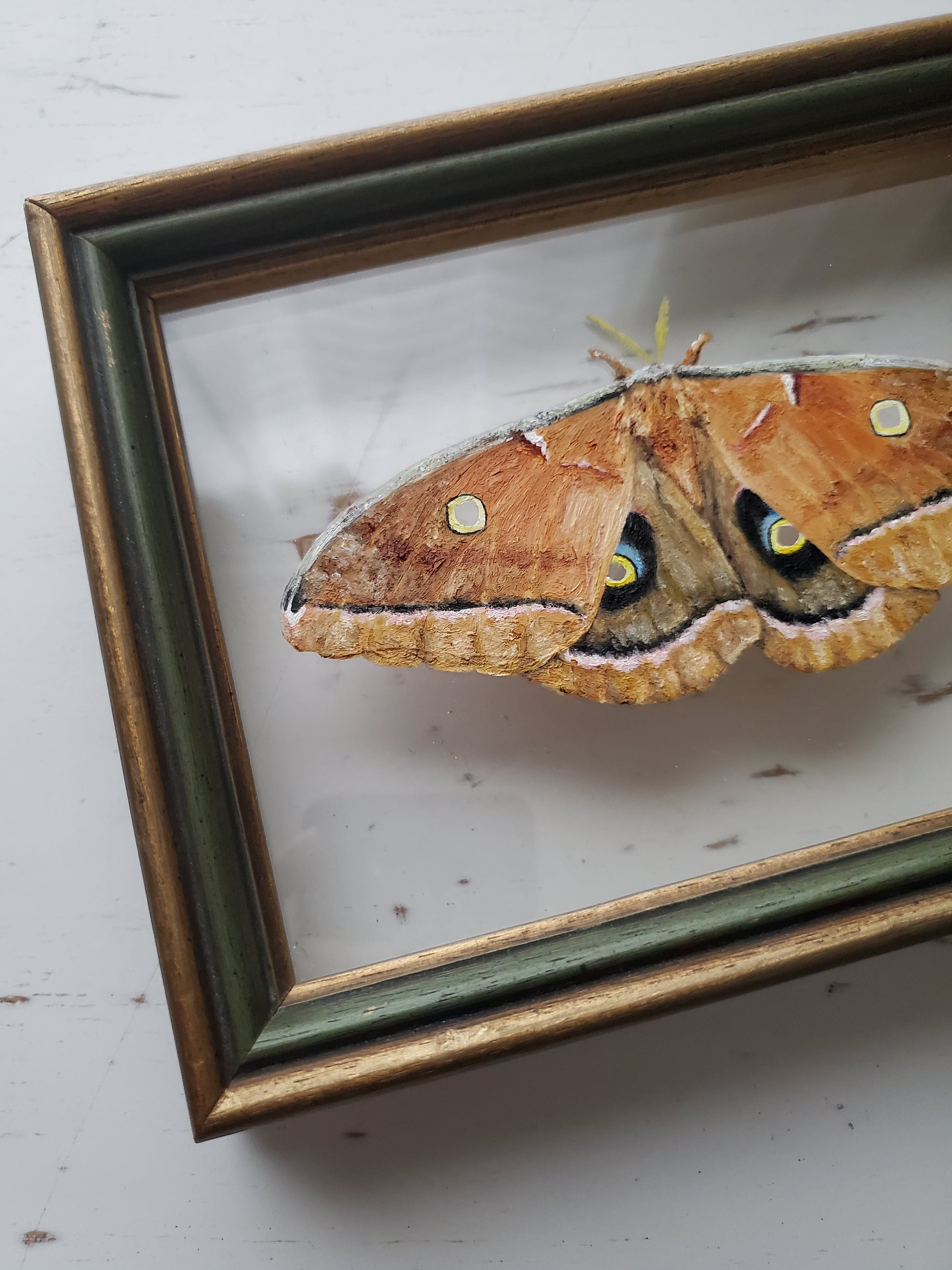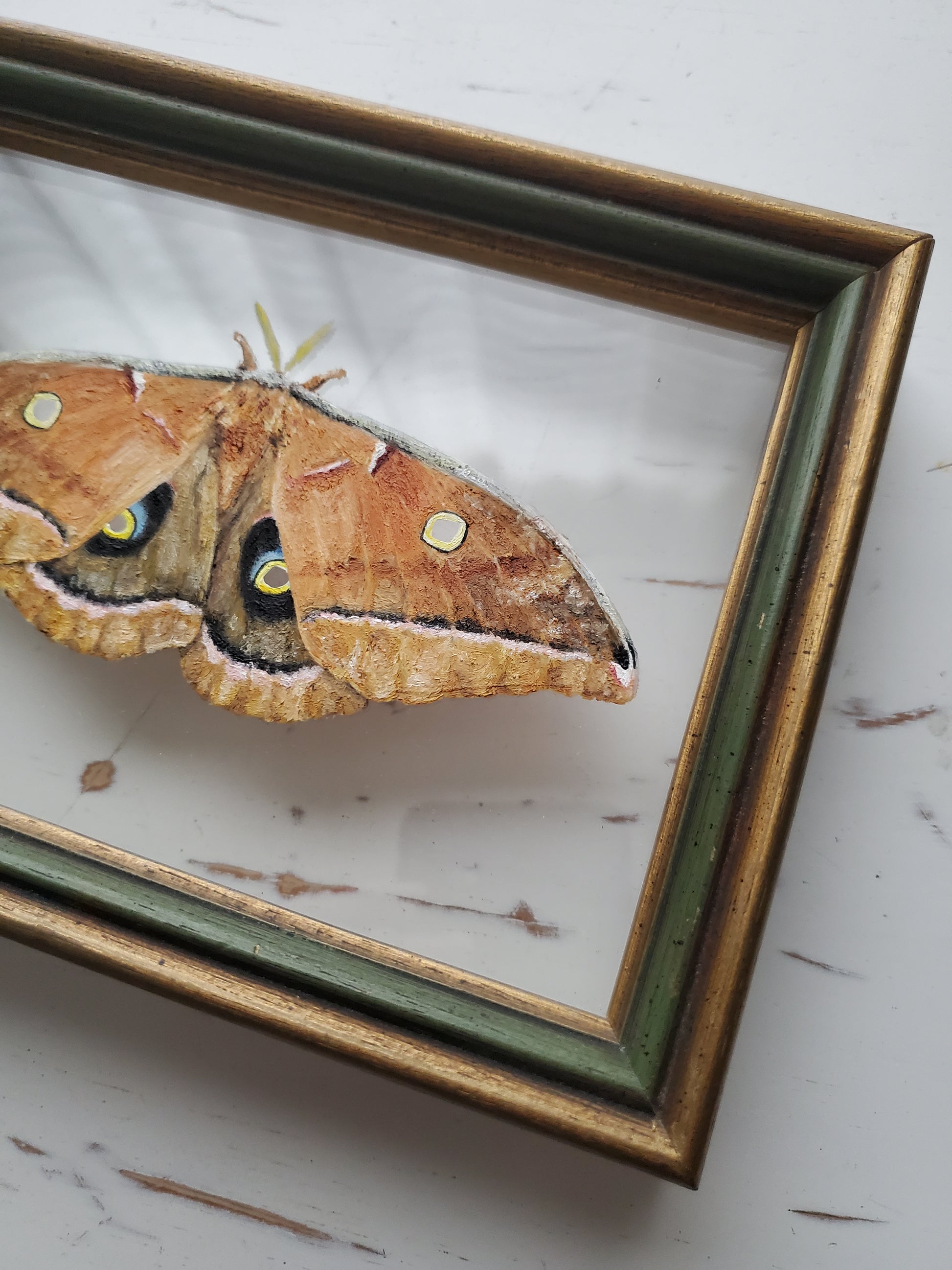 ✷ The inner walls of the frame will be lined with hand-cut strips of mat board that complement the piece. Hanging hardware + artist signature on back of frame.